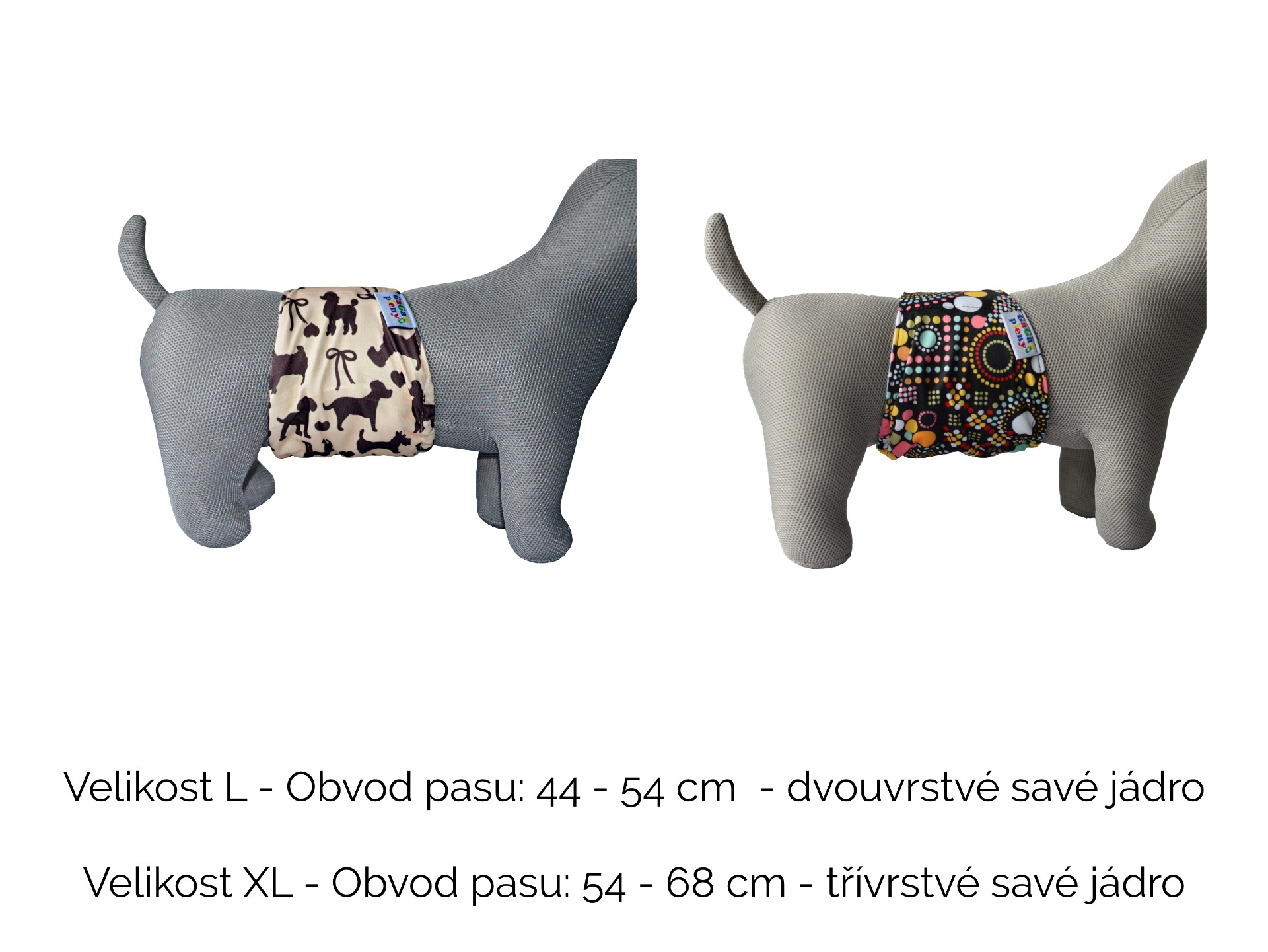 Flexibilní gumičky umožní zvětšit délku kalhotek, aniž by docházelo k jakémukoliv omezení pejska. Díky praktickému suchému zipu lze pohodlně regulovat v pase. Pás lze prát v pračce na 40°C a použít opakovaně.
