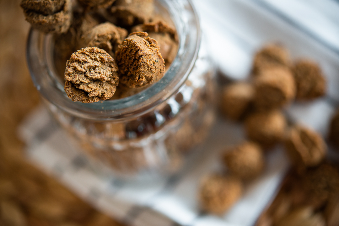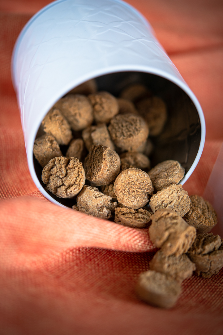 Složení hovězí: Jáhlová, cizrnová a pohanková mouka (lisované za studena), hovězí vývar, hovězí játra, kozí mléko, vejce, řepkový olej s příchutí másla, bylinky a zelenina. Výživové hodnoty: Bílkoviny 21 %, tuky 16 %, vláknina 3,5 %. NEOBSAHUJE LEPEK!