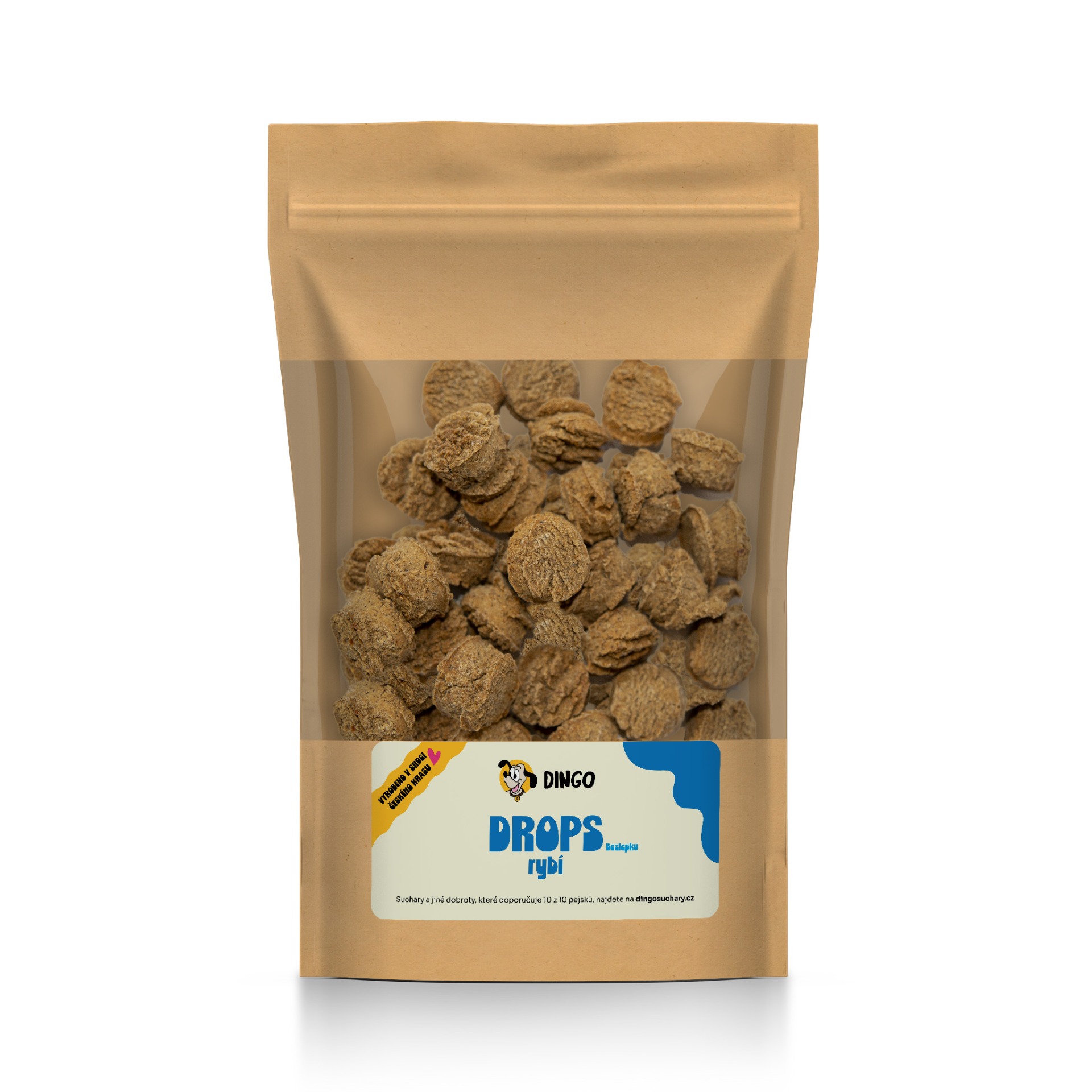 Složení rybí: Jáhlová, cizrnová a pohanková mouka (lisované za studena), vejce, olej z tresčích jater, krill, kelpa, zelenina, sardinkový protein. Výživové hodnoty: Bílkoviny 31 %, tuky 7,6 %, vláknina 2,2 %. NEOBSAHUJE LEPEK!