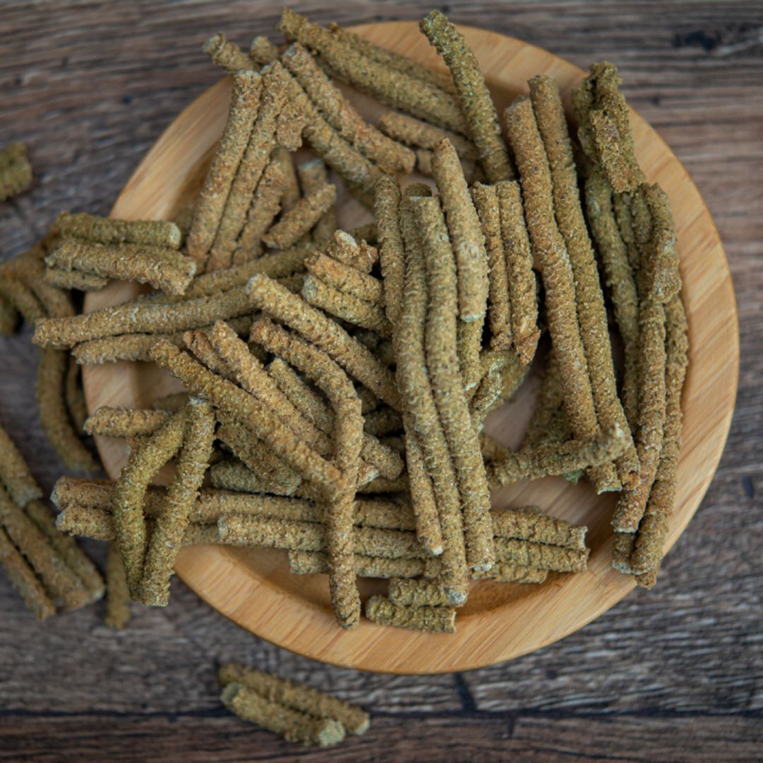 Pomalu pečené řepové nebo špenátové podlouhlé pamlsky, které si zachovávají výbornou chuť a křupavou strukturu díky svému jedinečnému tvaru. NEOBSAHUJE LEPEK!