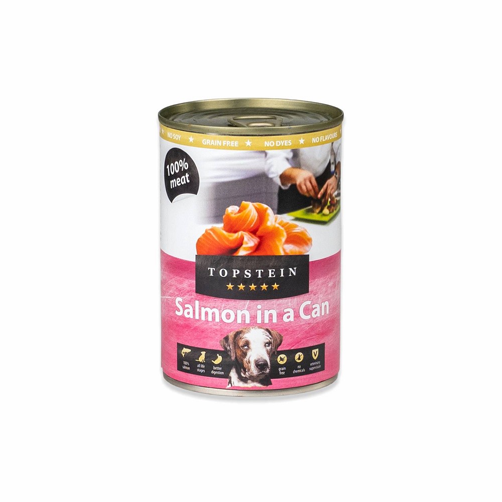 Výtečná konzerva plná kusů lososa pro dokonalou svačinku přináší pestrost do jídelníčku vašeho mazlíčka. Maso je přirozenou potravou každého masožravce, které zajišťuje potřebný přísun bílkovin se všemi esenciálními aminokyselinami. Pomáhá zlepšit příjem suchého krmiva, doplnit tekutiny a je vhodná při citlivém zažívání i potravních alergiích. Konzervy vynikají nejen svými nutričními a dietními hodnotami, ale také obsahují vysoký podíl vitamínů a minerálů. Ručně plněné konzervy v potravinářské kvalitě jsou pečlivě zpracované a přináší nejvyšší kvalitu vstupních surovin. Konzerva je opatřena plastovým víčkem, které uchovává maso v konzervě čerstvé a zároveň zabraňuje zápachu v lednici, vydrží v chladu minimálně 3 dny. Kuřecí kosti v konzervě nejsou nebezpečné, díky sterilizaci při vysokém tlaku a teplotě jsou zcela měkké a lze je rozmáčknout mezi prsty. Konzerva je čistě přírodním produktem té nevyšší kvality!