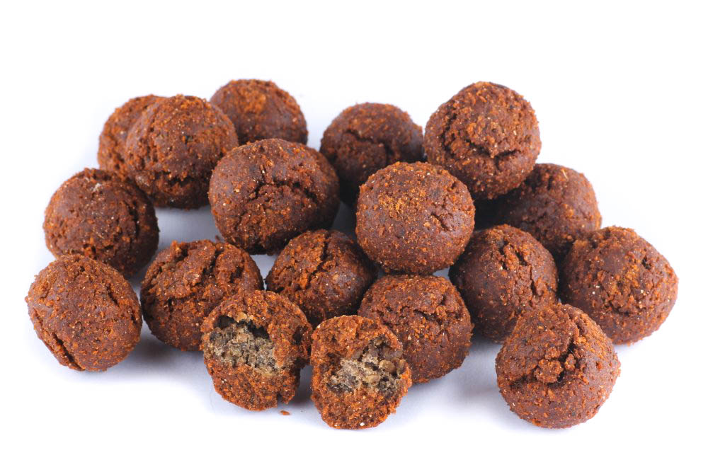 - Charakteristika krmiva: Tento typ měkkého krmiva je unikátní ve své technologické přípravě, kterou asi ještě nikdo jiný z výrobců krmiv pro psy v ČR nepoužívá. Suroviny jsou předem v několika fázích různě předpřipraveny, např. extruzí, máčením, vařením v páře, atd. Poté jsou co možná nejvíce zbaveny vody a postupně přidávány do míchacího zařízení spolu s pastou z vepřových škvarků a hmyzím tukem o dané hustotě tak, aby se všechny vrstvy dobře promísily a tuk se nevsákl do surovin, ale dostal se jen do prostoru mezi zrnka surovin a vzniklo tak bezvodé, měkké těsto, které se díky tomuto postupu tak snadno nevysouší. Při tvarování koule na speciálním inkrustačním stroji je její střed naplněn ještě směsíhovězích škvarků a hydolyzovaných jater. Tímto postupem přípravy získá celá směs opravdu neodolatelnou vůni a chuť pro psa.
